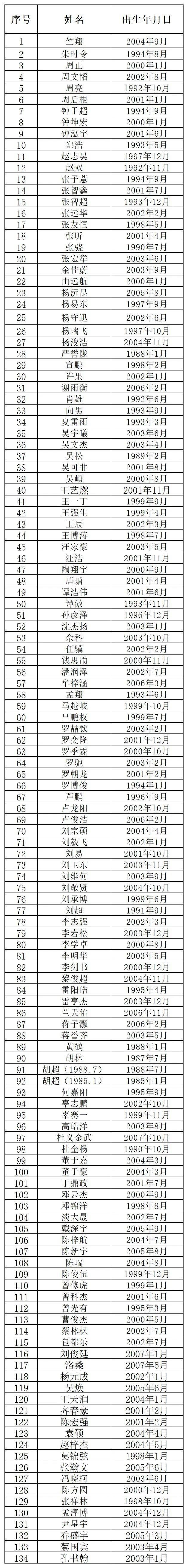 岳礼生、范霁、李庆、姚夏、邹侑根、天野圭介、李嘉豪、沈照林、戴一帆、刘釜言、张垒、冯春天、邵帅、张华、王杨镇雄